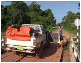 Norman neemt ons vandaag mee in het bos! Wat wil zeggen dat we via bospaden met de wagen zo dicht mogelijk bij de rivier parkeerden. Daarna volgde een tocht door de jungle over en tussen lilianen en doornstruiken van ongeveer een half uur. Het te volgen pad was vaak niet echt te zien, en verdwalen was beslist niet uitgesloten. Bij een temperatuur van meer dan 40 graden beslist geen ontspannende tocht. De visplaatsen die we hier aandeden waren mooi, maar voor drie vissers vaak te beperkt in omvang. Daarbij waren onze hengels veel te lang en te fragiel om er mee door de jungle te wandelen. Om de minuut bleven ze wel ergens achter een doornstruik vast hangen. Herman zijn korte en stevige boothengel was hiervoor beter geschikt. Daarbij namen wij veel te veel materiaal mee, ikzelf zelfs twee hengels en een reuze tas kunstaas. Zo deden we een drietal plaatsen aan, waarbij we in de diepere gedeelten met een dobber en visaas de vis trachten te verleiden. Resultaat : Norman 2 vissen, ik 1 vis. Allen Anjoumara van circa 4 kg. Omstreeks 3 uur waren we terug in de lodge, waarna we in de nabije rivier nog wat met kunstaas visten. Resultaat 3 Piranha's en enkele missers .