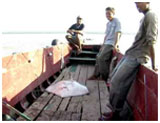 Ondanks dat we reeds om 14 uur moeten vertrekken naar de luchthaven, vissen we ook deze morgen nog, of dat was toch de bedoeling. Vissen deden we wel, maar vangen was er niet bij. Het was volle maan geweest, en de stroming veel feller dan de vorige dagen. Daarbij was het water bruin gekleurd van de modder. Alles bleef beperkt tot enkele korte rukjes op de hengeltop, waarbij het me toch lukte om nog een mooie katvis van ongeveer 5 kg te vangen. Naam die ze de vis gaven: Passisi.