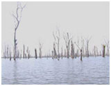 Vandaag staat een nieuw hoofdstuk op het programma, het Brokopondo stuwmeer. De rit ernaar toe duurt ongeveer 3 uur. Kevin, de Nederlandse eigenaar van de lodge is die dag ook vanaf Paramaribo vertrokken met zijn wagen en de boot op de trailer. Hij rijdt de volledige weg voor ons uit waarna we samen toekomen aan de botenhelling. Er is ook nog een andere boot toegekomen vanaf het water die onze bagage en de ouders van Kevin naar de lodge brengt, zodat wij met de boot van Kevin de kans krijgen om onderweg naar de lodge, gelegen op een eiland in het meer, te vissen. Eerst gaan we echter naar enkele hutten aan de oever, waar jonge meisjes met een net, kleine aasvisjes vangen voor de vissers. Het duurt even, maar voorzien van circa 5cm lange zilveren visjes vertrekken we voor onze eerste kennismaking met de vissen op het meer. Na een flink stuk varen op hoge snelheid tussen de boven het water uitstekende boomtoppen, is het eindelijk zo ver. Kevin plaats een elektromotor vooraan op de boot, die hij met de voeten kan besturen en zo de boot tussen de bomen dirigeert, terwijl hij vist. We kiezen voor Rapala skitter pops als kunstaas, en de beten laten niet lang op zich wachten. Het is een prachtige manier van vissen, en de eerste maal dat ik dit kunstaas gebruikte. De popper wordt met korte bewegingen, of aan een stuk terug binnengevist, waarbij deze met veel kabaal het water voor zijn neus opzwiept. Een voor de Tukunari onweerstaanbare prooi. De vis valt het kustaas dan ook met een steeds verrassende jump aan, waarbij we letterlijk kunnen spreken van het kunstaas aanslaan, niet aanvallen. De vissen proberen als ze gehaakt zijn op allerlei manieren het kunstaas terug kwijt te geraken, met springen, hoofdschudden tot korte diepe runs naar de onderwater liggende takken. Deze takken zijn trouwens nooit veraf, en het gebeurd dan ook meer dan eens dat, zeker aan lichter materiaal, de vis zijn vrijheid terug wint. Iedereen vangt wel zijn deel, maar de grootste vissen worden steeds door Norman gevangen. Achteraf blijkt dat hij na een gemiste beet, steeds een aasvisje aan de dreg bevestigde, en zo de vis vaak tot een tweede uitval kon verleiden. (Dat merkte ik echter pas na twee dagen op). We proberen verschillende plaatsen uit, en merken bijna steeds op de eerste tien worpen of ze er zitten. De visplaats kan zowel een ondergelopen eiland zijn, de oevers van een eiland, of tegen drijvende waterplanten aan. Steeds is de diepte echter beperkt tot maximum enkele meter. Op een van die plaatsen probeer ik het ook even met een kleine duikende Rapala. Ik vang hiermee iets meer vissen, waaronder enkele piranha's, maar ze zijn allen aan de kleine kant. Maar ook aan deze dag komt een einde, en we overnachten in de open lodge onder een prachtige sterrenhemel.
